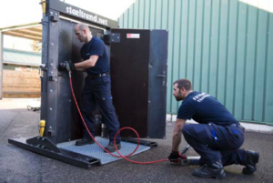 Trainingstür für gewaltsame Türöffnung mit Brechwerkzeug